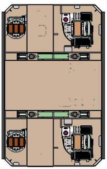 本方案采用LETOU自主研发生产的全套驱动、控制系统,包含KY130AS0430-15B行走伺服电机2台,KY110AS0410-15转向电机4台,6台伺服驱动器,和中控处理器。整套系统模块化设计,即插即用,操作简单,易于安装。甚至对于未生产过车辆的厂家可以轻松掌握。